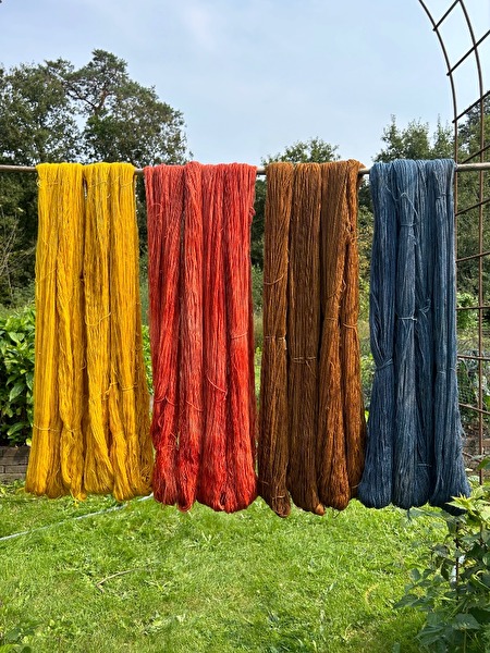 Meekrap levert warme roodtinten die al eeuwenlang worden gebruikt in textiel. Verfkamille en coreopsis zorgen voor sprankelend geel en oranje. Wede, een traditionele Europese blauwgever, en Japanse indigo tonen je de magie van blauw uit bladere. Een proces dat elke keer opnieuw verwondert.